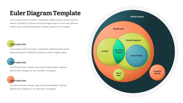 This template is perfect for educators and academics teaching set theory or logical concepts, business analysts and strategists presenting market relationships and organizational structures, data scientists visualizing categorical overlaps, researchers demonstrating hierarchical relationships, and consultants explaining complex interconnected systems to clients.