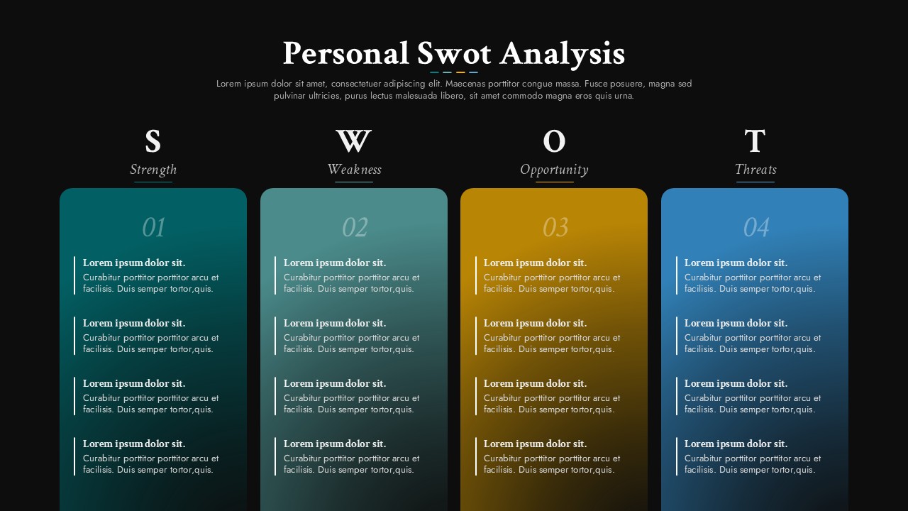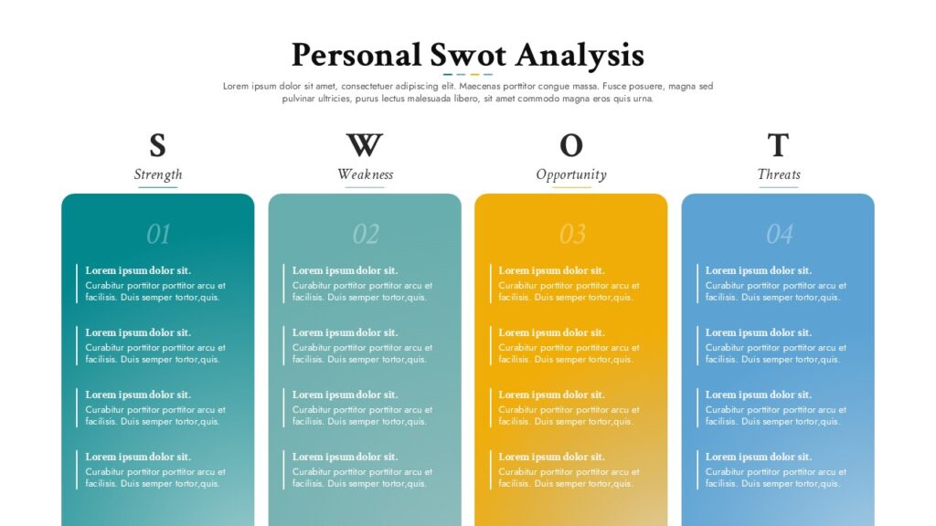 Personal SWOT Analysis Four Column Layout Template for PowerPoint & Google Slides