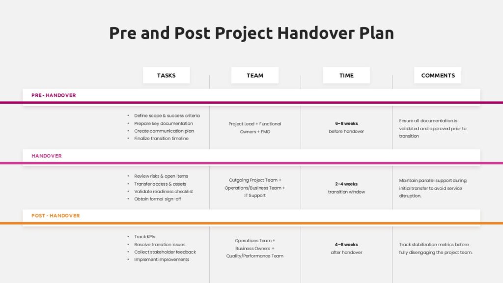 Pre And Post Project Handover Plan For PowerPoint & Google Slides Templates