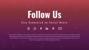 The template’s structured hierarchy, with a bold “Follow Us” headline and a refined subtitle encouraging ongoing engagement, provides a polished framework suitable for corporate presentations, marketing decks, content strategy reports, and event communications. Strategic body text offers space to highlight the value of engaging with your brand on social media, such as updates, insights, announcements, and community stories. This ensures the Social Media Follow Us Call-to-Action Slide Template for PowerPoint & Google Slides supports not just visibility but engagement—encouraging audiences to follow, interact, and stay informed.